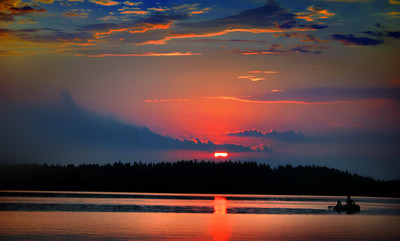 Ультрамариновый закат над лесным озером