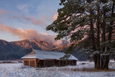 То ли заброшенная, то ли недостроенная турбаза где-то возле с.Чепош на Чемальском тракте, Республика Алтай. Первый снег ноября.