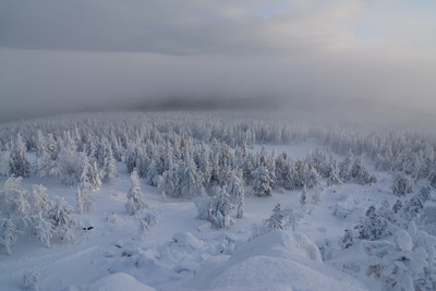 Качканар. Зима. Утренний туман отступает, открывая красоту зимнего леса.