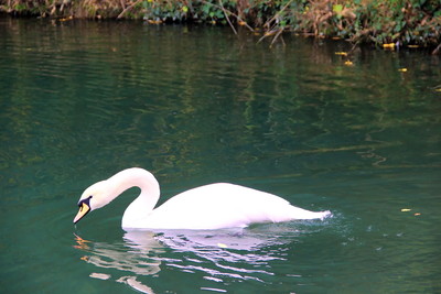 Осенний пруд - лебеди живущие на пруду озабочены добыванием пропитания. Конечно в силу природных инстинктов.