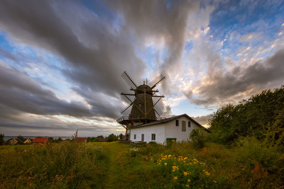 ДАТСКАЯ ДЕРЕВНЯ. СТАРАЯ МЕЛЬНИЦА ВЕЧЕРОМ.