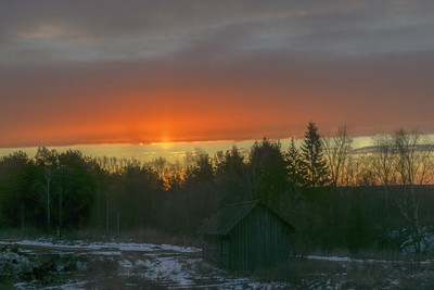 Первые лучи солнца осветили нависшую над горизонтом тучу
