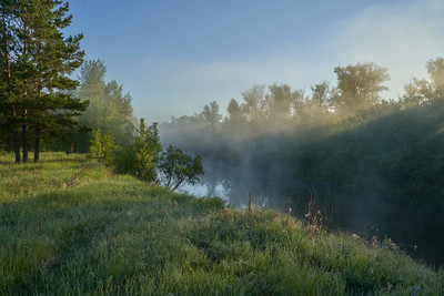 река,туман,рассвет