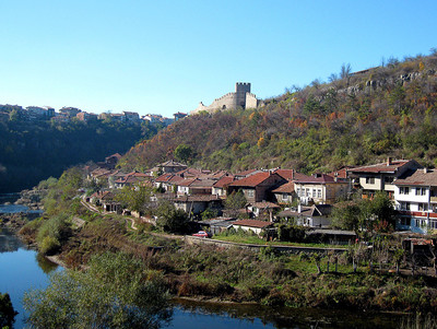 город, река, горы, дома