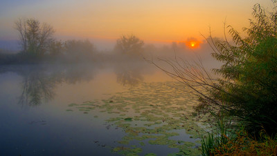 Утренний туман на озере Студёное. Мещера