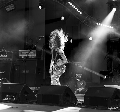 Александр Судденков, Махать гривой- это у них у многих приём такой эффектный. Особенно с задней подсветкой. Нагибается вперёд , волосы свешиваются- и резко назад. Играть не мешает )