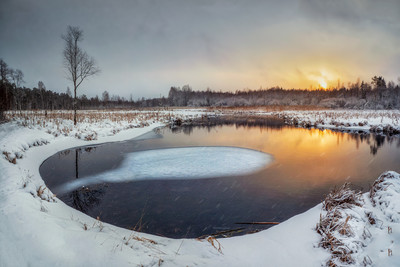 Январский вечер на речке Теплой. Парк Зверинец. Гатчина.