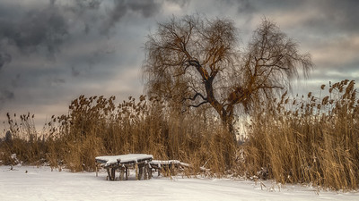 Кто то для себя постарался, сварганил столик и лавки!
