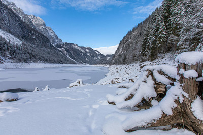 Blick vom Gosausee zum Gosaukamm im Winter
