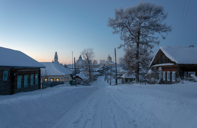 Сумерки в старинном селе Великорецкое. Кировская область.