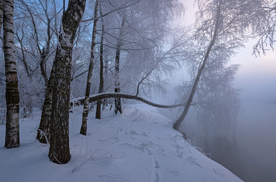 Склоненное дерево очень колоритно смотрится, как бы просит - мне побольше инея дайте...