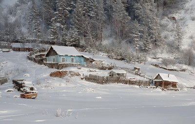 Как гармонично покрашен дом! Аккурат в тон зиме. Немного странно, что люди выбирают себе место для жилья на склоне. Зато никаких потопов, и бодренько так на работу с горки) Яркая работа!