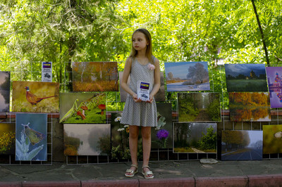 Zlobina Natalia, День защиты детей 01.06.Внуки гуляли в парке и увидели,что много авторов вынесли свои работы на аллею,студия у меня рядом,вот они и постарались..