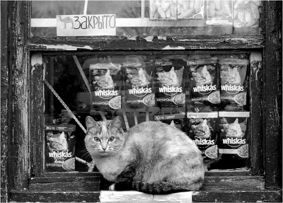 … человек, прежде всего, видит цвет. Затем, кто-то будет искать то, что глубже, а кто-то ограничится наслаждением от яркости картинки. Фотография это не только момент, тут я с вами согласна, но и ни как не способ демонстрации достижений в науке и технике. Фотография это смысл, это содержание, это особый миг. И помощник тут не цвет, а внутренний цензор, позволяющий увидеть, отсев шелуху вынести на поверхность к зрителю самое важное и если это важное нуждается в цвете - он его получит, а если цвет мешает - он уберет его, оставив зрителю историю, эмоцию, смысл, если хотите.люди стремелись к цвету. для того они и создали цветные плёнки. люди стремились ко многому, но все ли к чему мы стремились и чего достигли, следует слепо считать великими достижениями, которые несут только самое лучшее? А если и так, то даже этим самым лучшим надо уметь пользоваться, в нужное время и в нужном месте. Бороться против чб, только ради цвета? По поводу данного фото скажу, при всей яркости картинки в цвете, уверена, разноцветье пакетов с кормом отвело бы зрителя от основной идеи фотографии. |