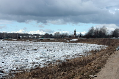 Без названия река Корожечна..лед пошел...Ближе к устью из-за подпора Рыбинского водохранилища ширина реки увеличивается, на протяжении последних 4 километров река Корожечна судоходна.Река впадает в Волгу ниже города Углич.Колокольня церкви Спаса Преображения. с. Спасское.. Рядом с колокольней располагается сельское кладбище,храма нет. |