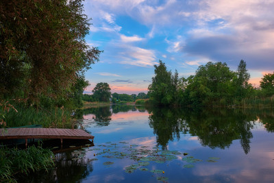 Фотография маленькой реки на закате. Теплый безветренный вечер. Ляпота!!