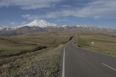 Einsame Asphaltpiste in einer überwältigenden Landschaft. Ich würde links abbiegen. Gute Bildgestaltung.