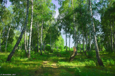 Дорога в берёзовой роще